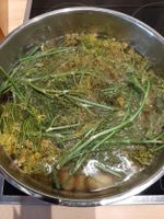 July 4, 2023 - Tach zusammen, das Gemüse vom Samstag musste verarbeitet werden. Also Pellkartoffel mit Quark. Quark mit Schmand vermischen. Schnittlauch, Petersilie dazu. Salz und Pfeffer. Kartoffel mit den Dillblüten " Kronor Dill " kochen. Angebratene Schinkenwürfel. Salat gabs auch noch. Ich kann leider...