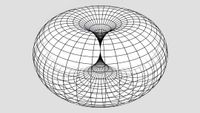 This is a representation of the hypothesised toroidal Universe, or "donut theory" of the Universe. Such a Universe cannot really be visualised this way, as donuts have two dimensional surfaces, and the proposed toroidal Universe would be curved not just through space, but through spacetime.