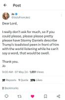 While I usually abhor this level of petty bs- we're past being cordial. And the pettier and more graphic the details that can and will come out- and how the right will try and rationalize them (have we heard about Hunter's laptop this week?) will continue to amuse me. More on reddit.com