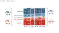February 4, 2026 - In each survey, Gallup asks U.S. adults whether they identify politically as a Republican, a Democrat or an independent. The recent increase in independent identification is partly attributable to younger generations of Americans (millennials and Generation X) continuing to identify as independents at relatively high rates as they have gotten older.