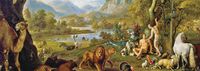 Kass tells us that the first story ends with man, whereas the second begins with him. In the first, the animals come first and man is to be their ruler, but in the second, the beasts come after the creation of man, as his possible companions. In the first, man is to be the master of life on earth (1:28); in the second, he is to be the servant of the earth (2:5, 15). Finally, in the first story, man is made directly in the image of God (1:27); in the second he is made of earthly dust and divine breath (2:7) and only becomes god-like at the end – “now the man is become like one of us” (3:22) and only in transgression.