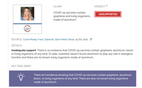 The allegation graphene is in any vaccines is unsupported by any evidence. Examination of the ingredients in Pfizer’s COVID-19 RNA vaccine does not include graphene