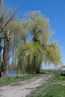 Salix alba is one of the largest species of willow, capable of reaching an approximate height of 25 metres and a spread of 8 metres at maturity. The leaves are slender and pointed, up to 10 centimetres in length. They are green on top and have a blue-green, silky texture on the underside from their silvery-white hairs. This gives the tree a pale appearance from a distance, hence its common name, White Willow. Yellow and green catkins are produced in early spring, with male and female catkins growing on separate trees. As a deciduous tree, its leaves turn yellow in autumn before falling.
