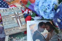 September 22, 2025 - After founding Turning Point USA, a political organization for young conservatives that describes itself as training young people to promote ideas like free markets and limited government, Kirk later founded the more explicitly religious TPUSA Faith, whose mission is to "eliminate wokeism from the American pulpit." A supporter prays at the makeshift memorial for Charlie Kirk outside of the headquarters of Turning Point USA on Thursday in Phoenix.