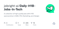 GitHub - jobright-ai/Daily-H1B-Jobs-In-Tech: A collection of high quality jobs with H1B sponsorship in SWE, PM, Marketing, and Design