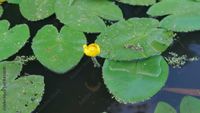 Nuphar lutea, the yellow Water-lily, Brandy-bottle, or Spadderdock ...