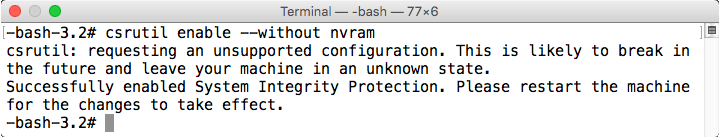 csrutil enable --without nvram
