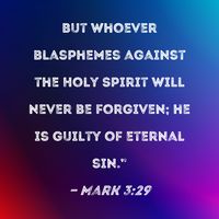 May 15, 2009 - Jesus said, “Truly I tell you, ... 3:28), but then He gives one exception: “Whoever blasphemes against the Holy Spirit will never be forgiven; they are guilty of an eternal sin” (verse 29)....