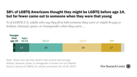 October 1, 2025 - Overall, 38% of LGBTQ adults are ages 18 to 29, and 25% are in their 30s. Only 13% are ages 60 and older. 66% of transgender adults are younger than 30. This compares with 46% of bisexual adults and 21% of gay or lesbian adults.