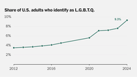 January 24, 2024 - With nearly 30% of Gen Z adults identifying as LGBTQ+, LGBTQ+ Americans are one of the fastest growing voting blocs in the country, growing at a scale, scope, and speed that will fundamentally reshape the American electoral landscape.